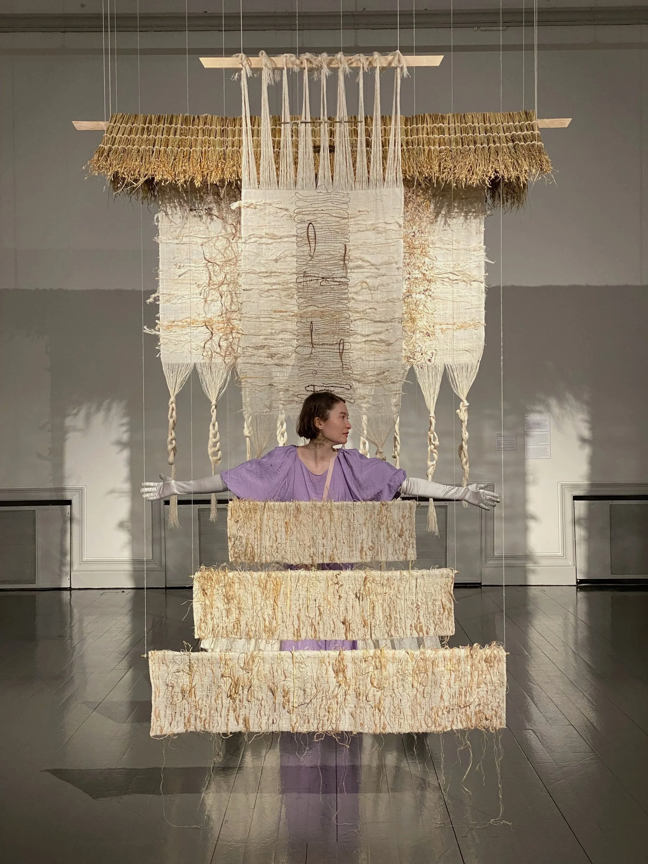 Mirei Kato (b. 1990) is a Japanese-Finnish artist and costume designer, who works with fiber, space, and textile art. Mirei has a Master of Arts degree from Aalto University (2024), and a degree in sewing – specializing in theatre costumes and historical costumes. She has also studied Textile Art and Design in Kyoto in 2019-2020 and 2023.